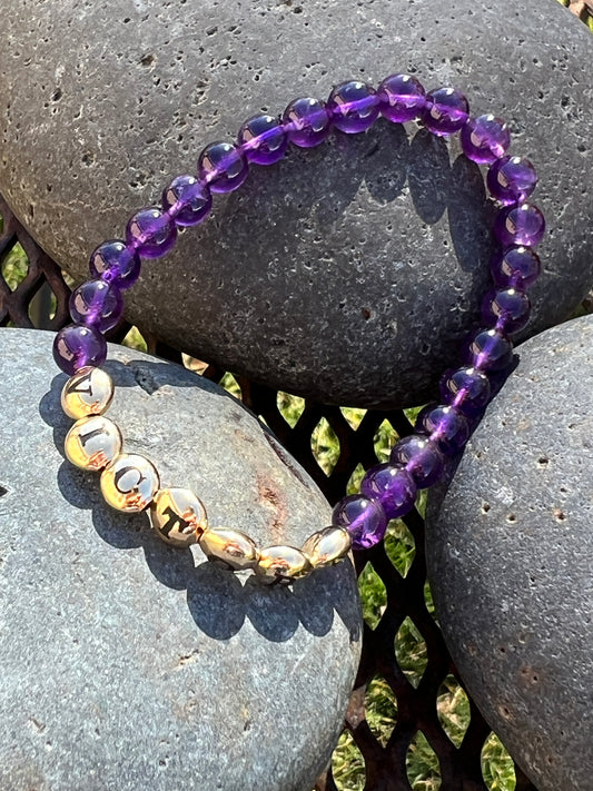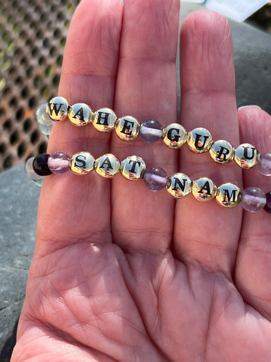 Gold Rutile Quartz Mantra Power Stack Bracelet