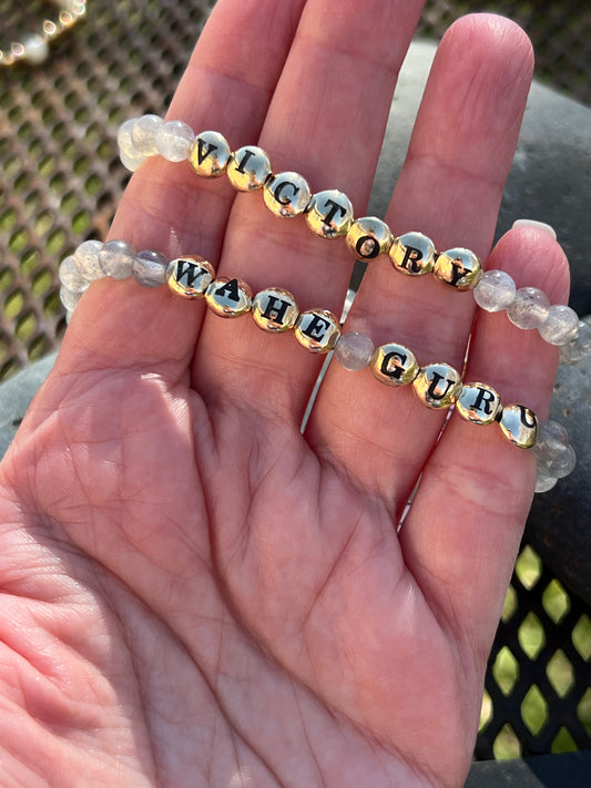 Rainbow Moonstone Mantra Power Stack Bracelet