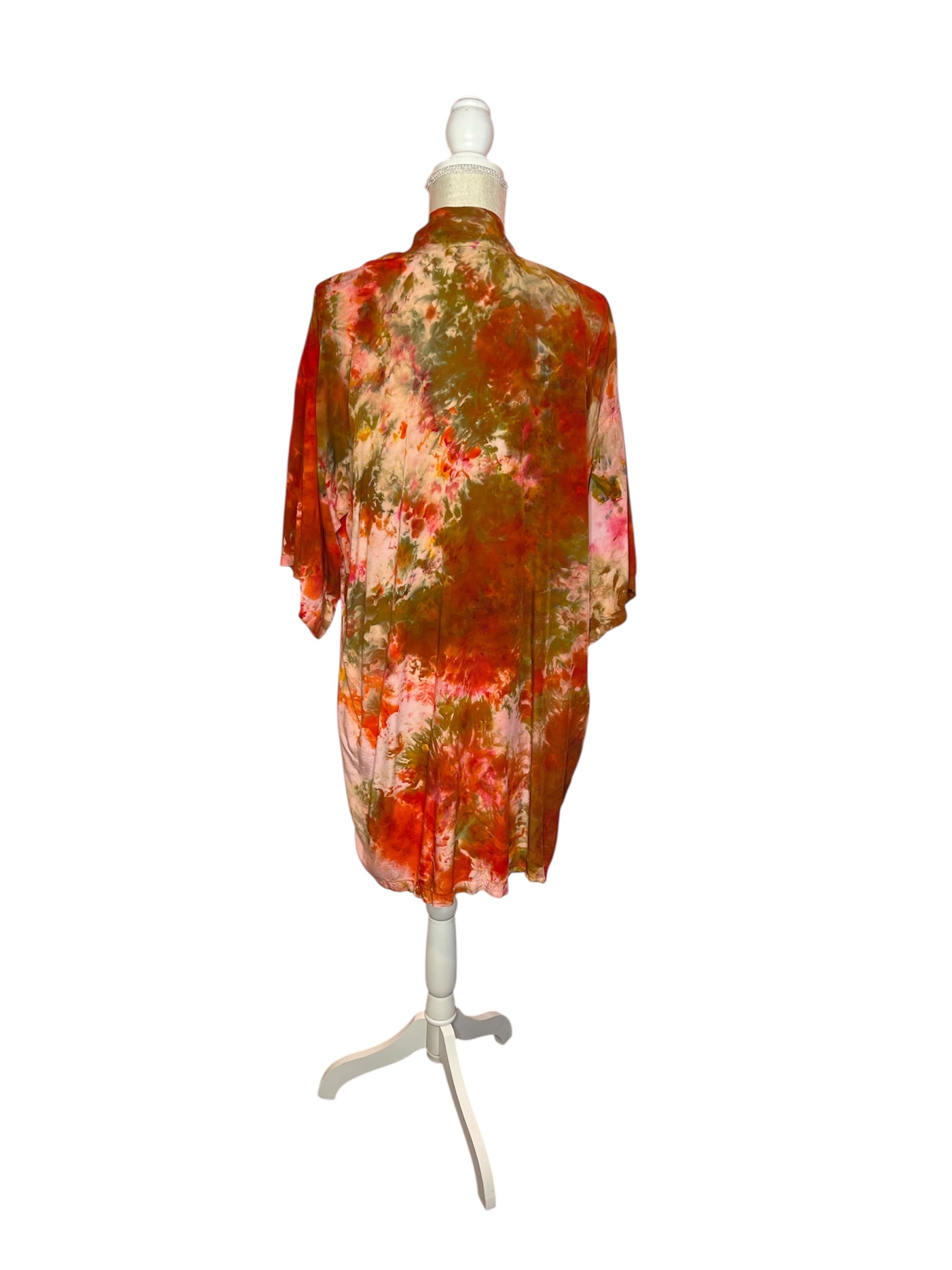 Mid Length Temple Coat. Made from rayon and hand colorized with low impact dye. This piece is one of a kind. Can be worn a multitude of ways.