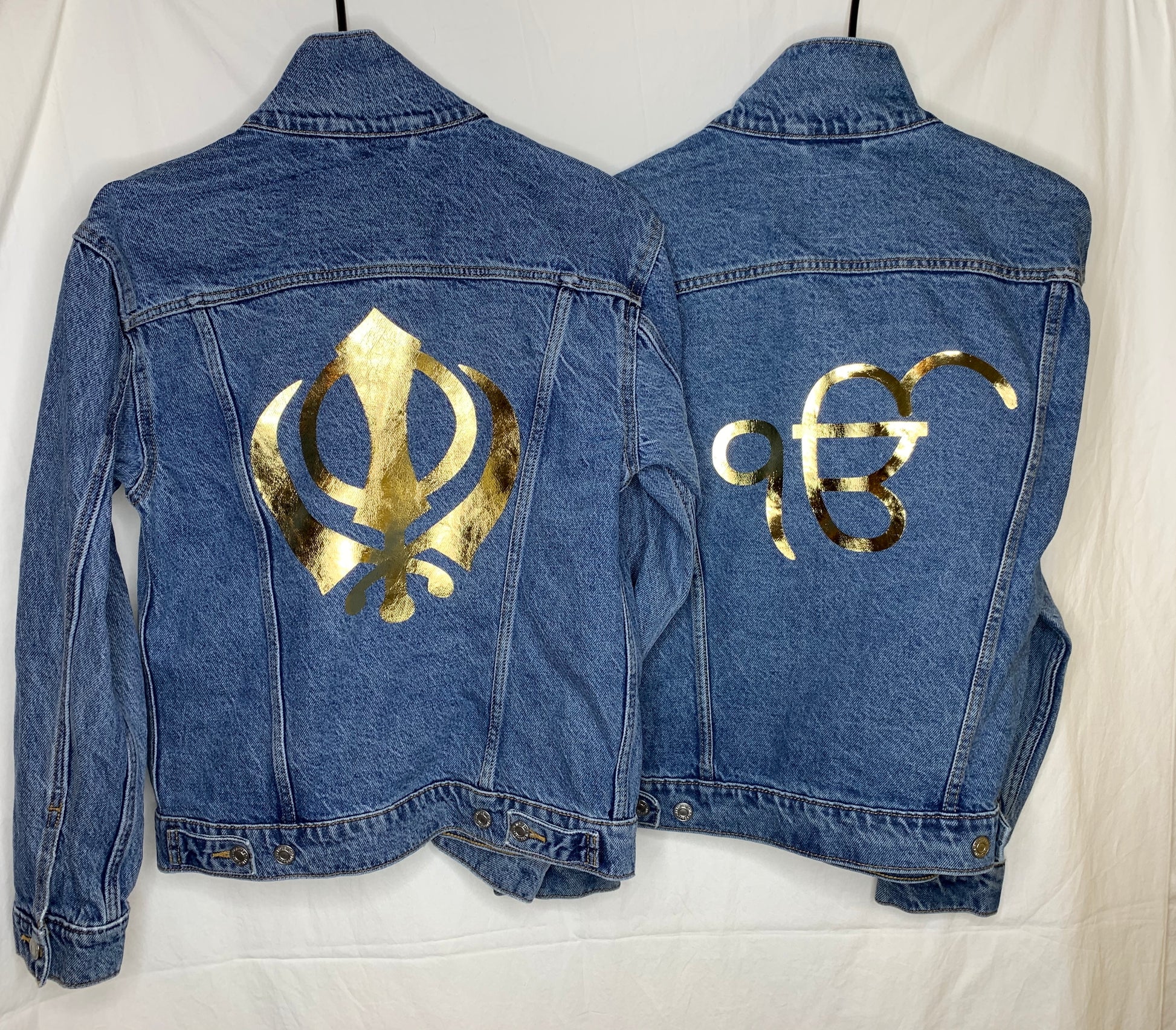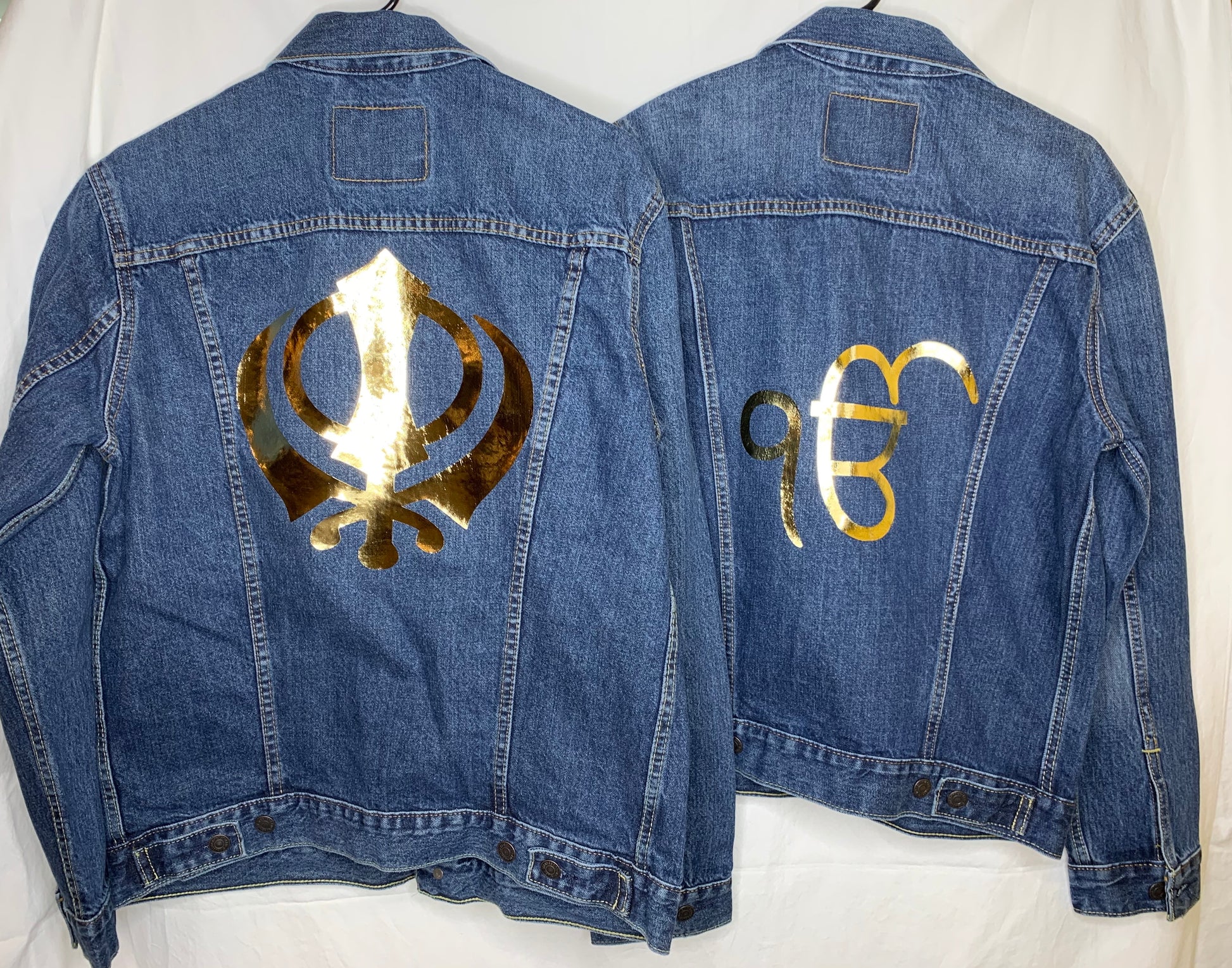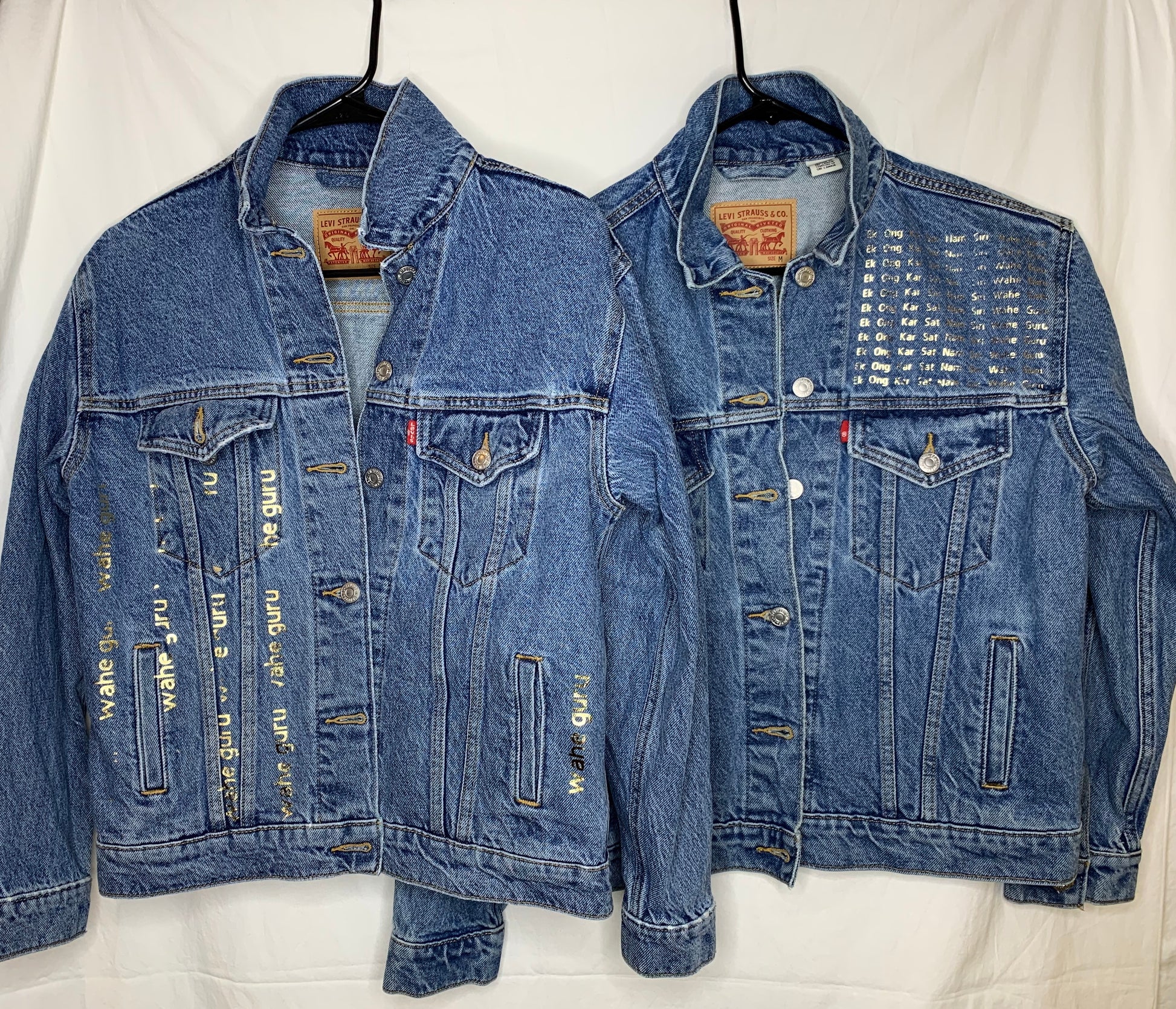 Altared Denim is a one of a kind creation. Ready for immediate wear. These Levi Denim Jackets have been distressed and adorned with 22kt gold decals. Mantra and sacred geometry take these already amazing denim jackets to the next level.