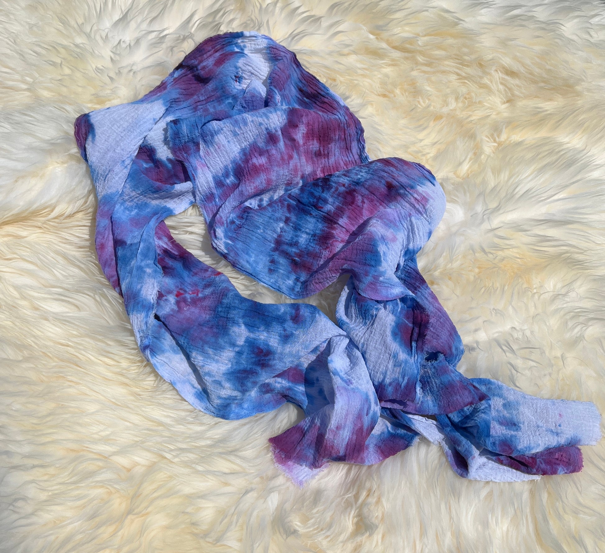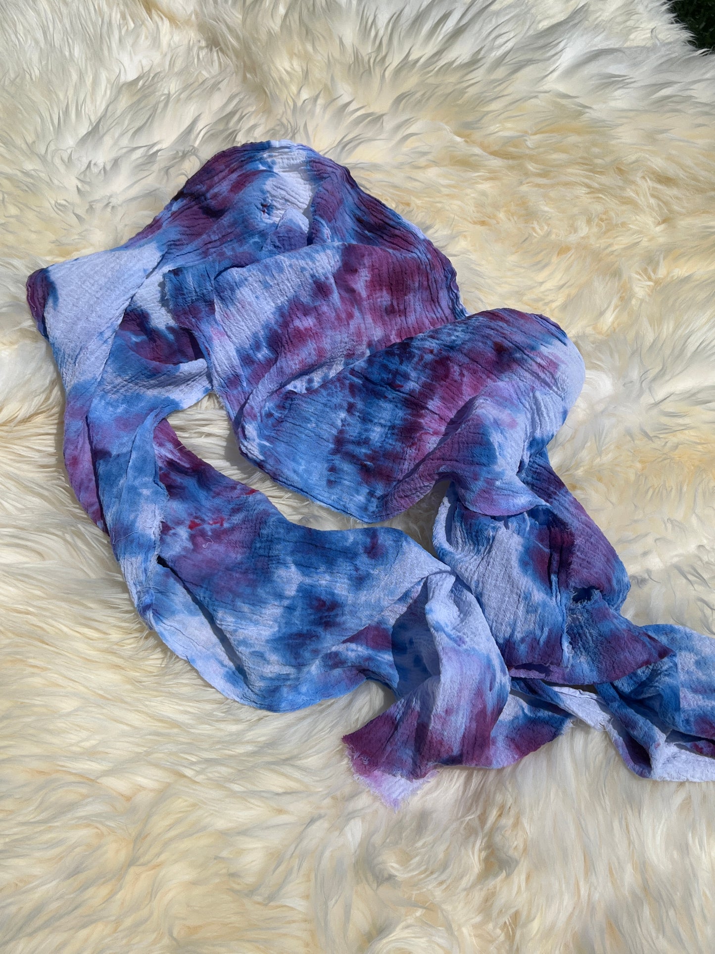 Material: 100% Cotton. Light and airy with crinkle texture. Hand dyed with low impact, non toxic dye.