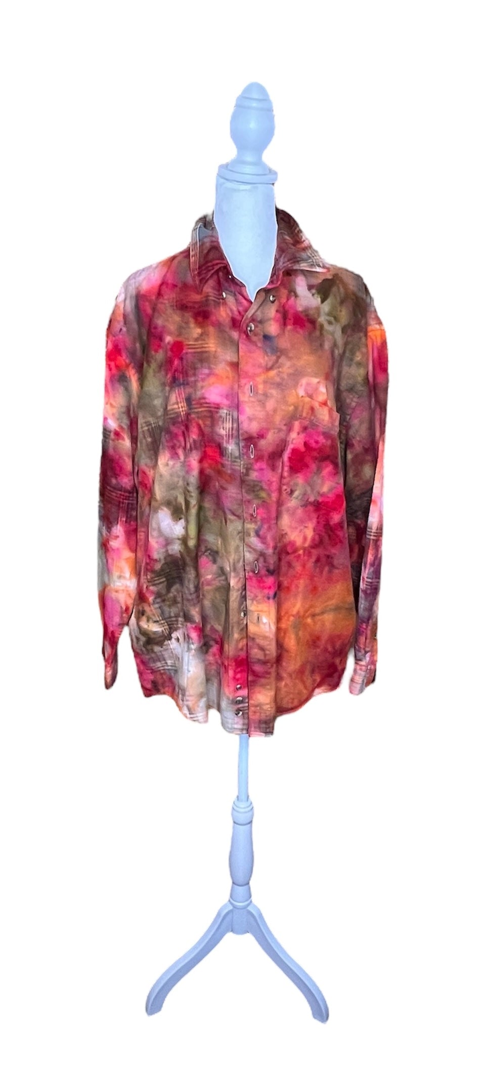 Items are unisex sizing. Each flannel is up cycled and hand dyed, making for a one of a kind piece.