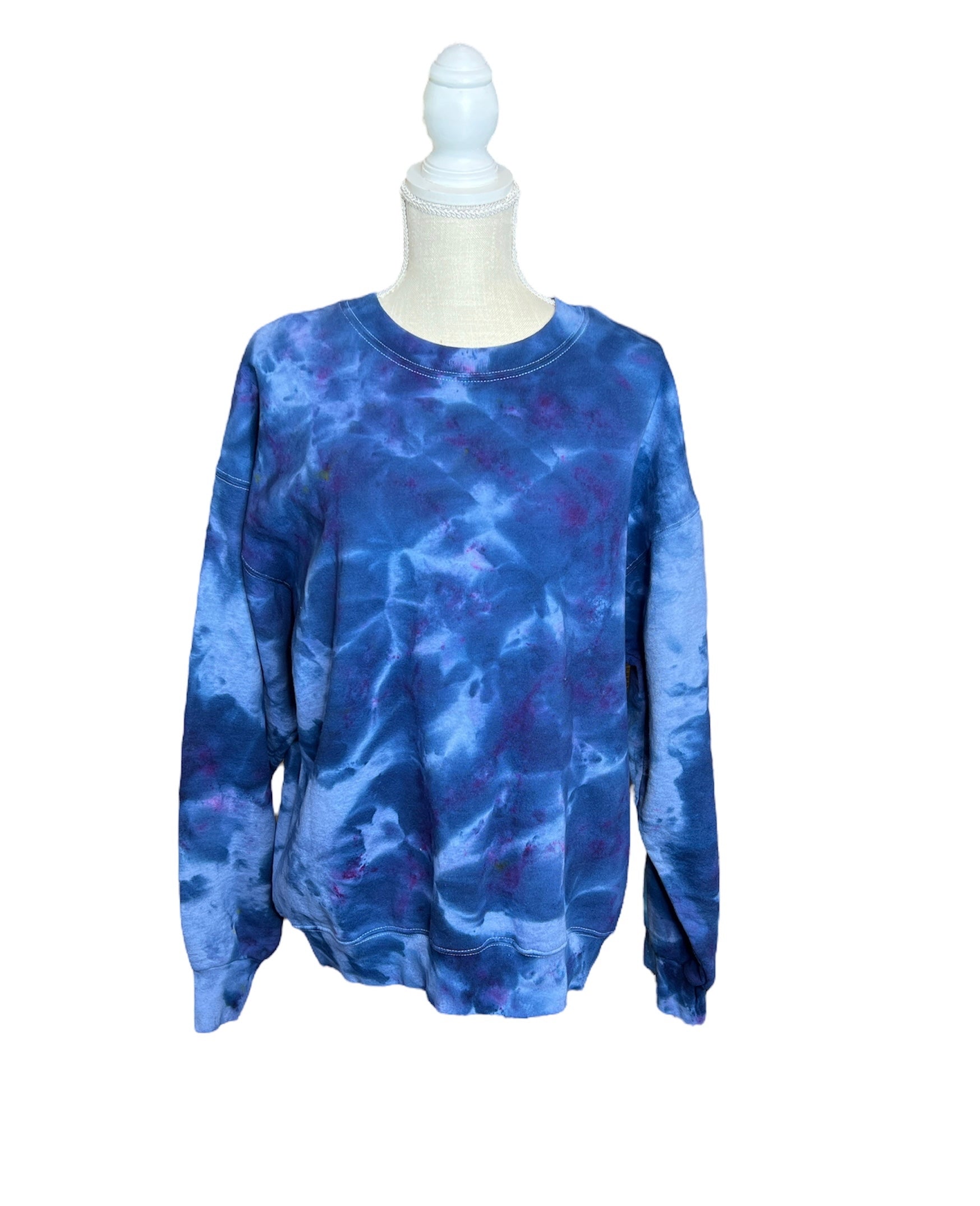 One of a kind, handdyed sweatshirt. Unisex sizing. 90% cotton blend.