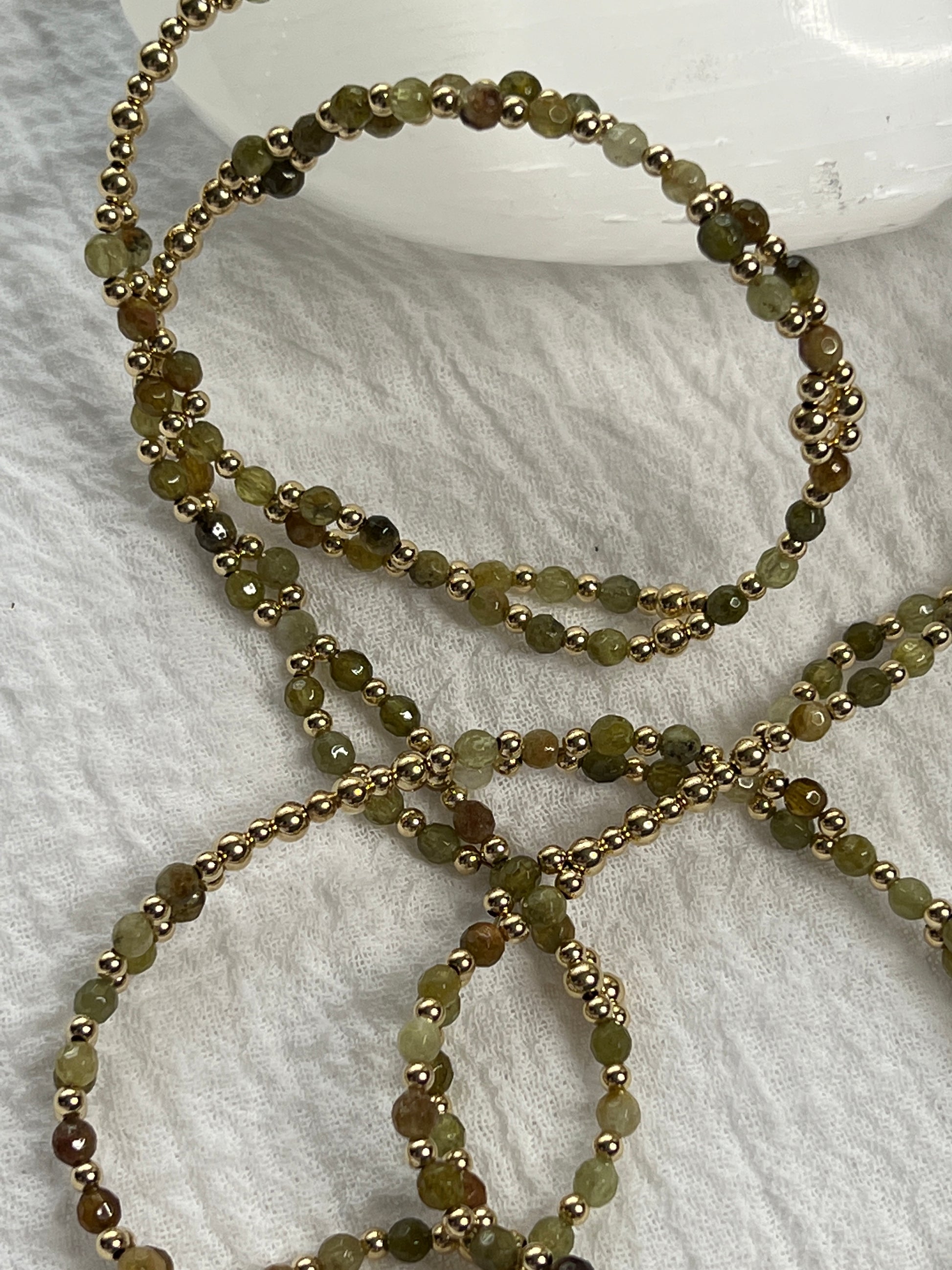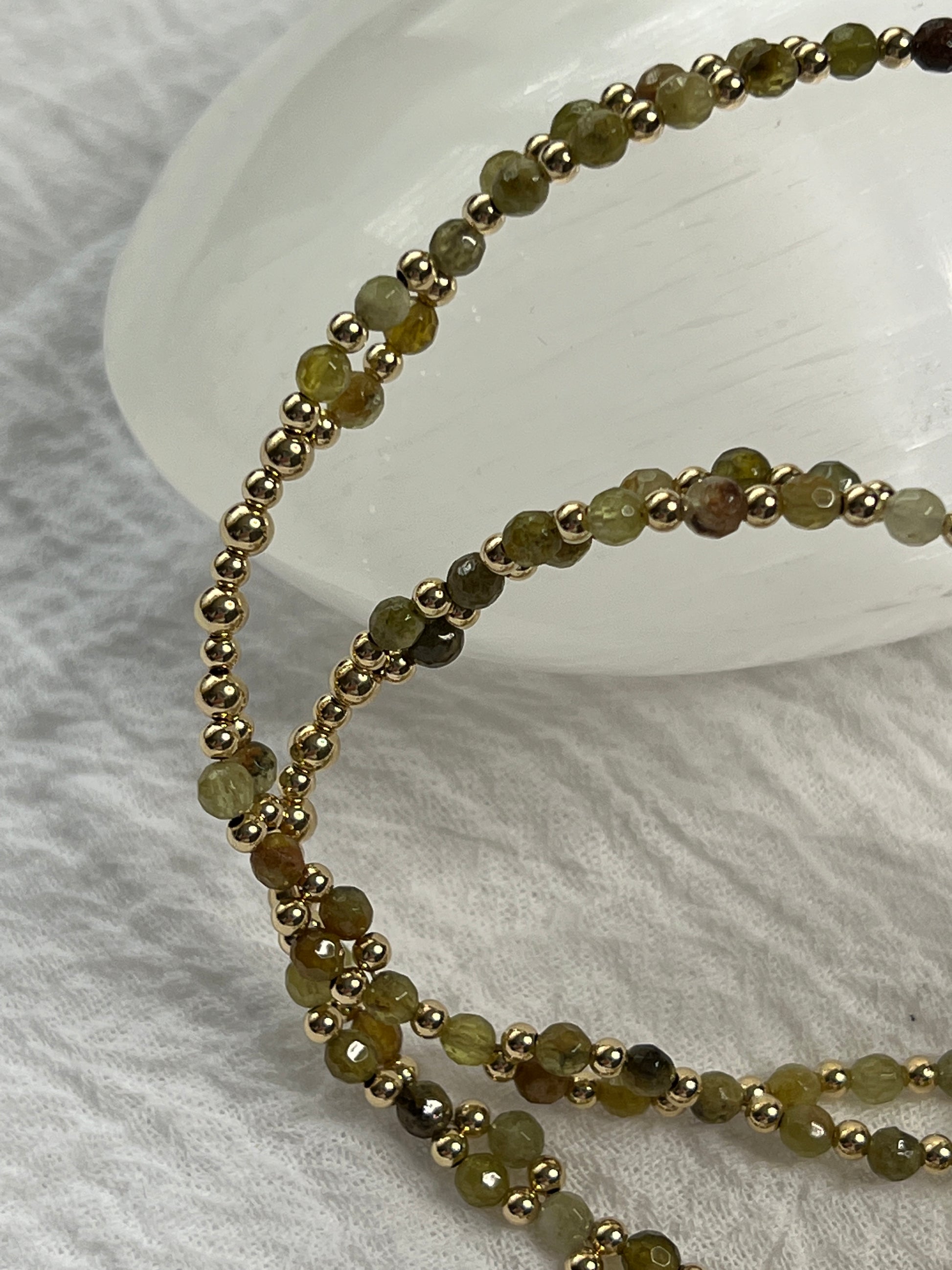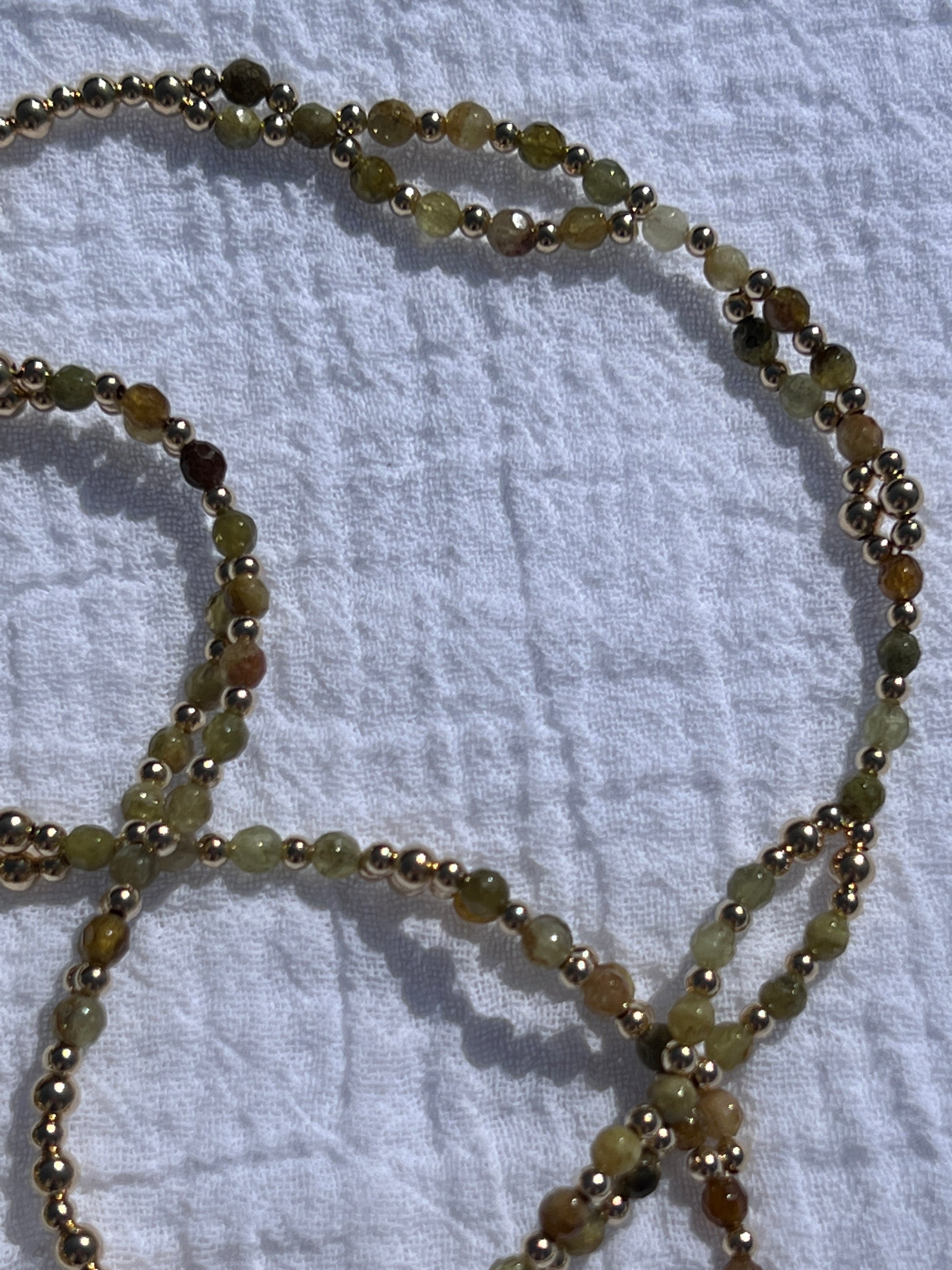 Faceted Green Garnet with 14kt Gold Fill beads.