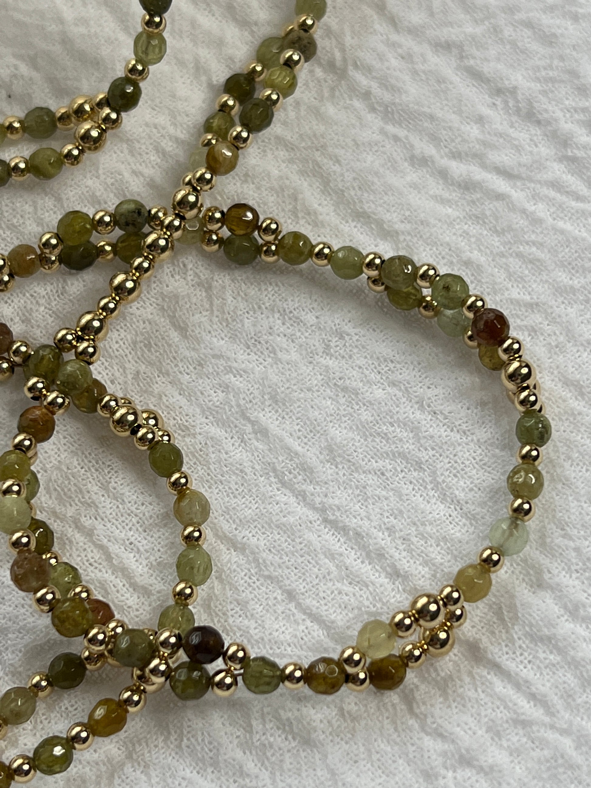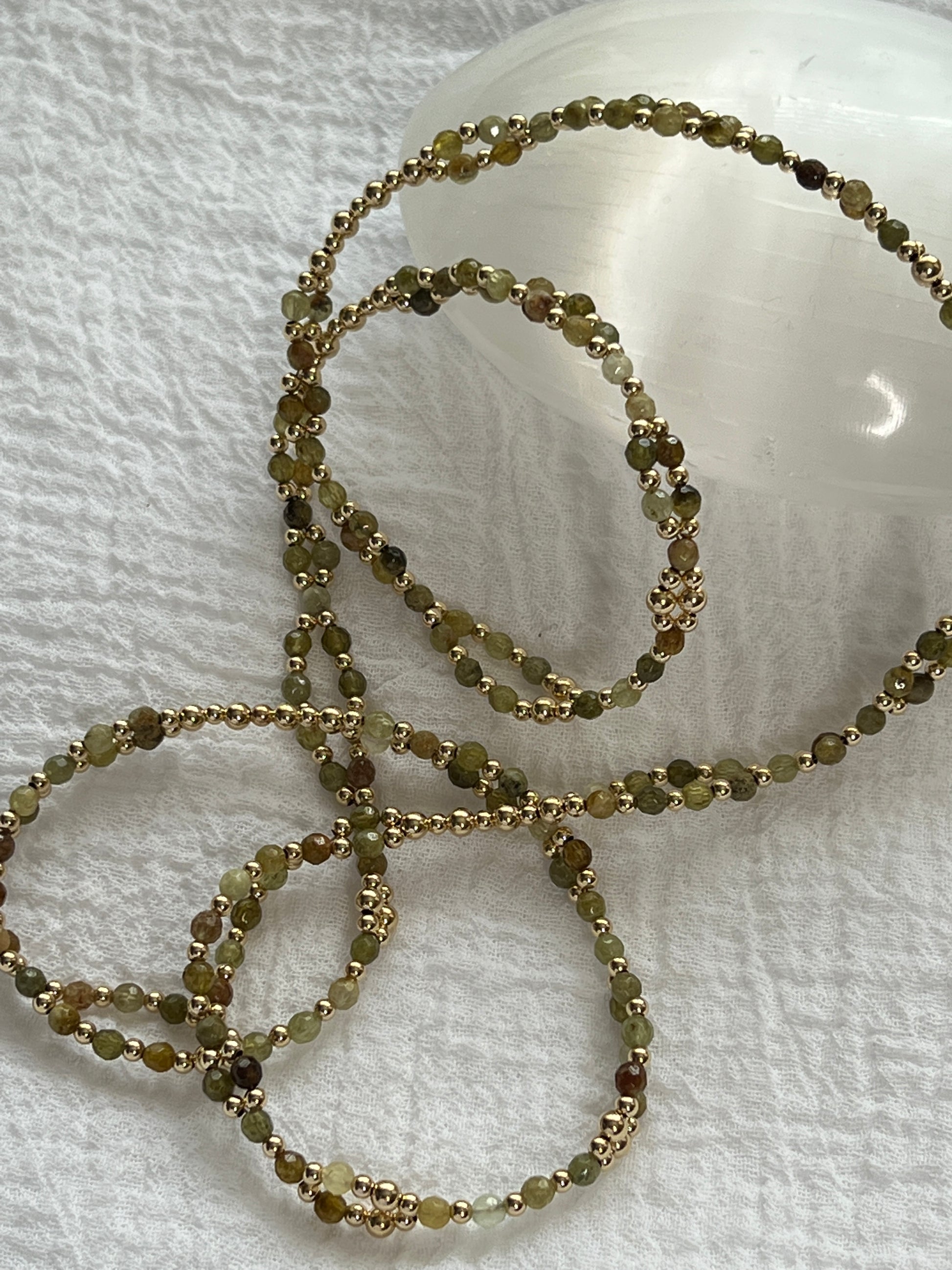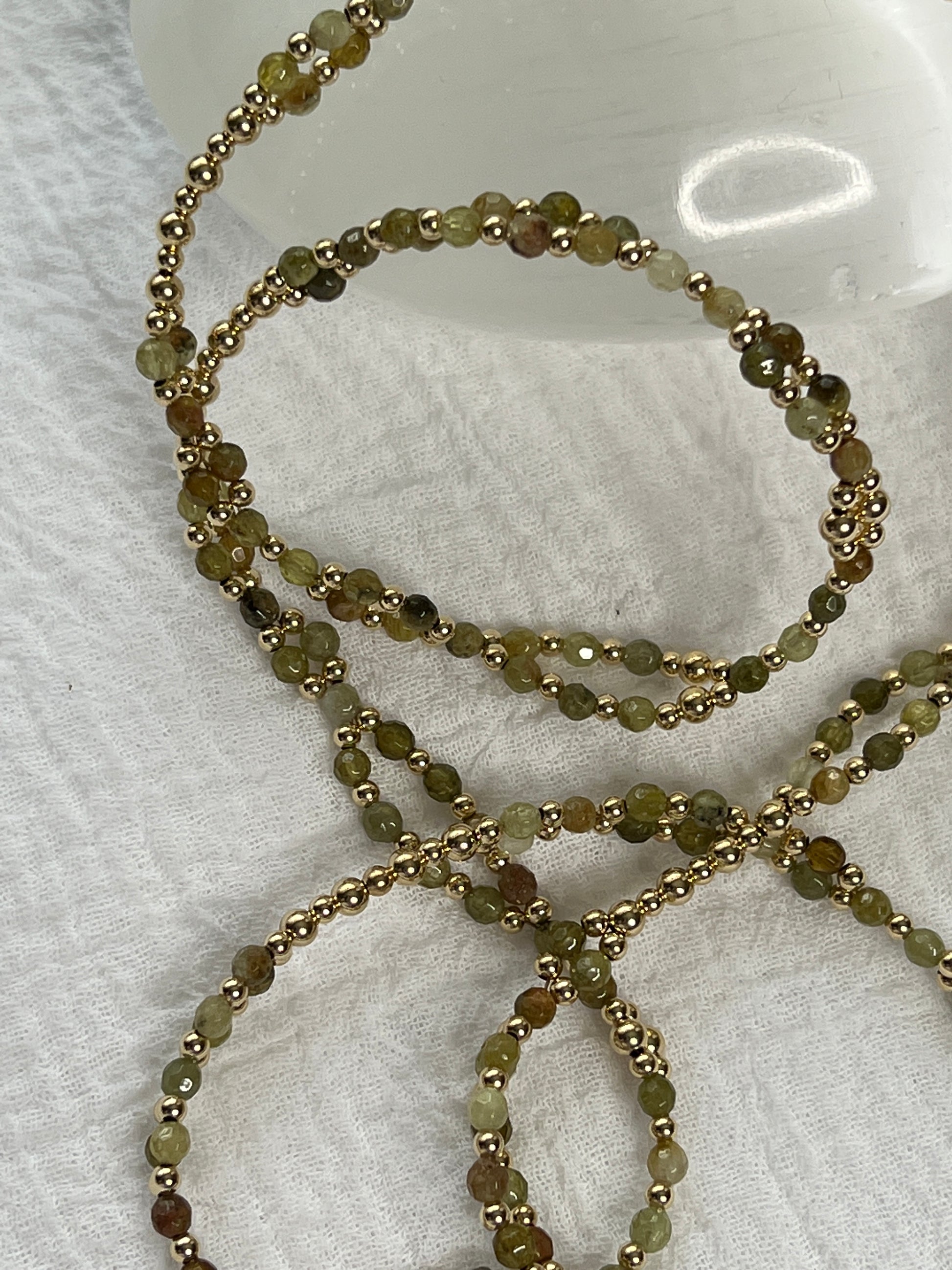 Faceted Green Garnet with 14kt Gold Fill beads.