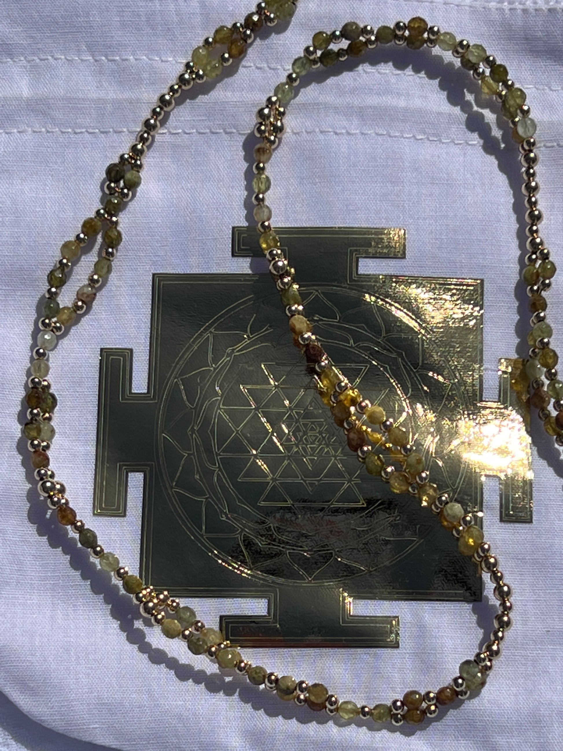 Gemstone: Green Garnet resonates with the heart chakra. Has restorative and liberating properties. Cleanses the heart center. A growth stone that is a powerful conduit of birth, renewal, development, and creation. Has powerful energies that will uplift you and brighten the future. Green Garnet also promotes wealth and prosperity. It will assist you to happily accept what the Universe has to offer. Can also assist you in communication with the higher spiritual realms. Has many physical healing properties.