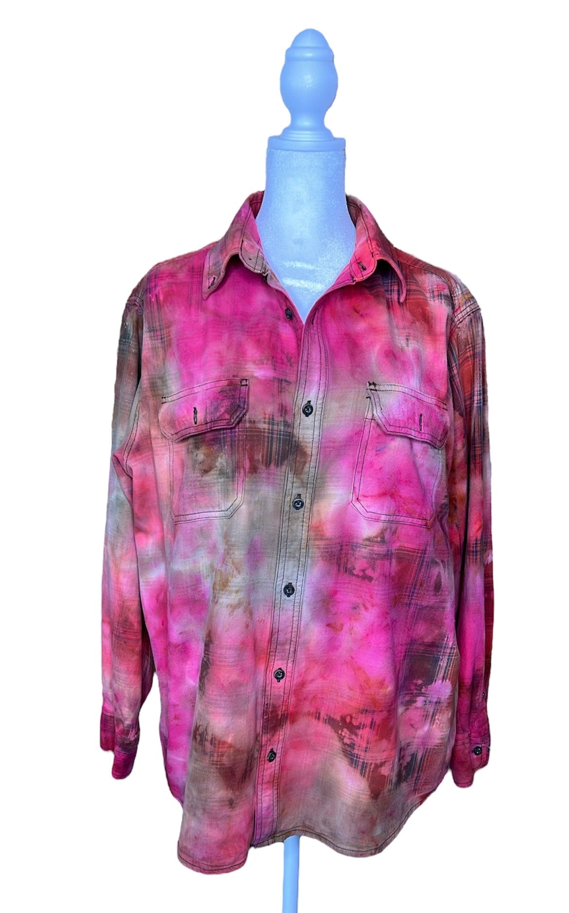 Items are unisex sizing. Each flannel is up cycled and hand dyed, making for a one of a kind piece.