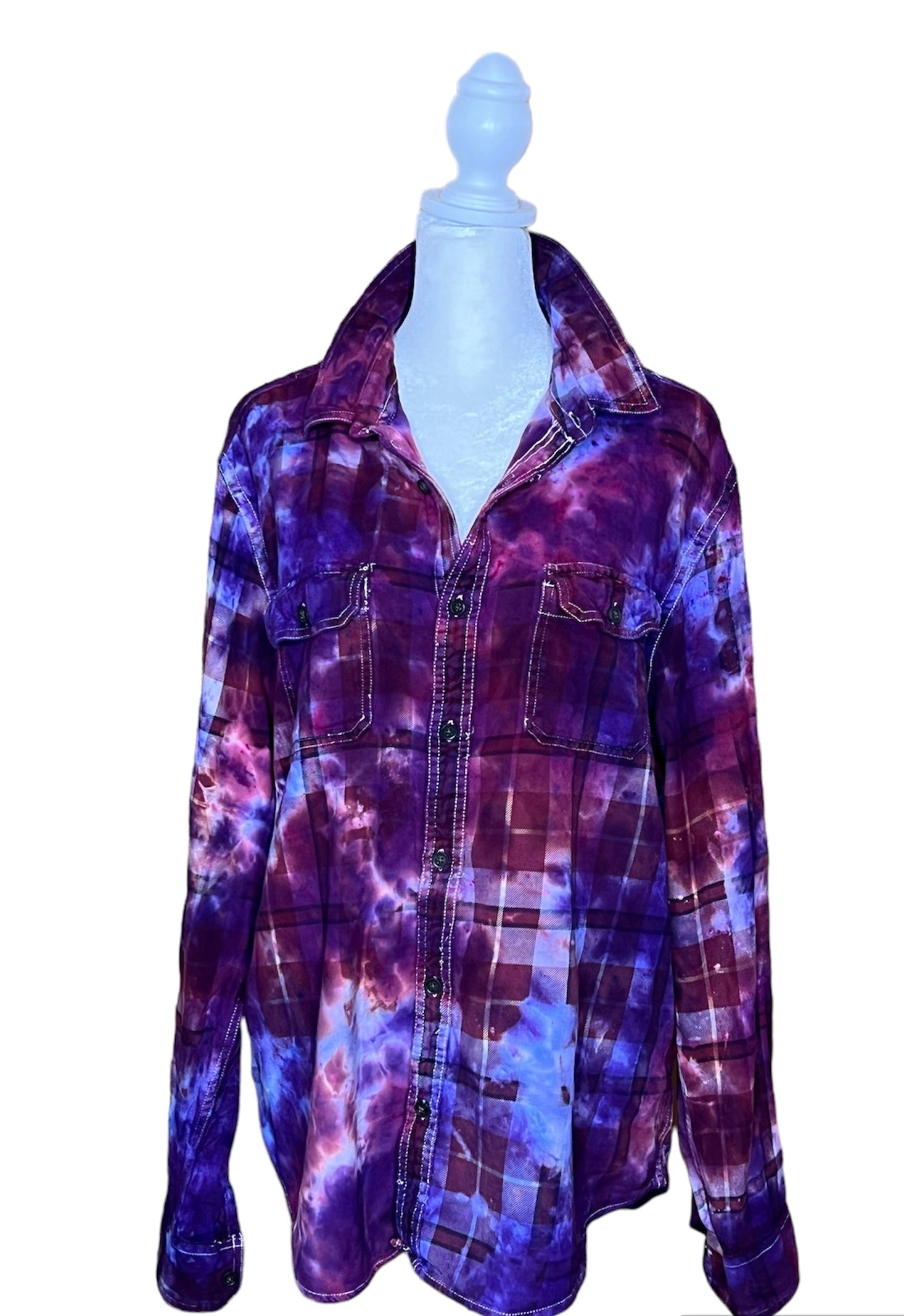 Hand dyed and distressed flannels. Perfect addition to any outfit. You can wear these with your favorite jeans, shorts, leggings, or denim skirt.. a good looking and comfy addition to most any outfit.