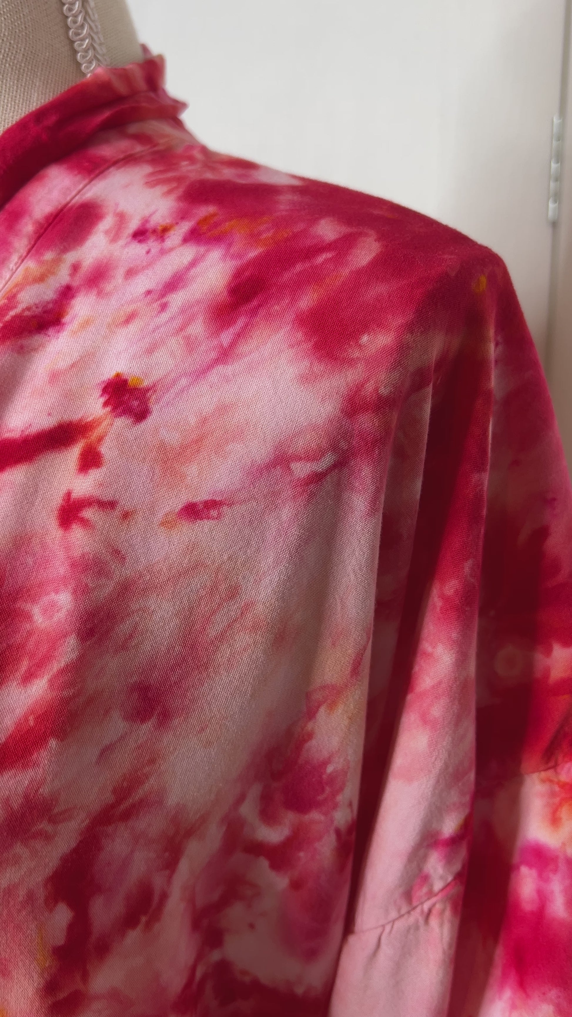 Introducing the Mid-Length Temple Coat: Elevate your wardrobe with this timeless piece crafted for style and sustainability. Made from premium rayon and hand-colorized with low-impact dye, each coat is a work of art, unique in its own right. With its versatile mid-length design, this coat offers both sophistication and practicality, perfect for any occasion. Here are the measurements for our Size O/S: