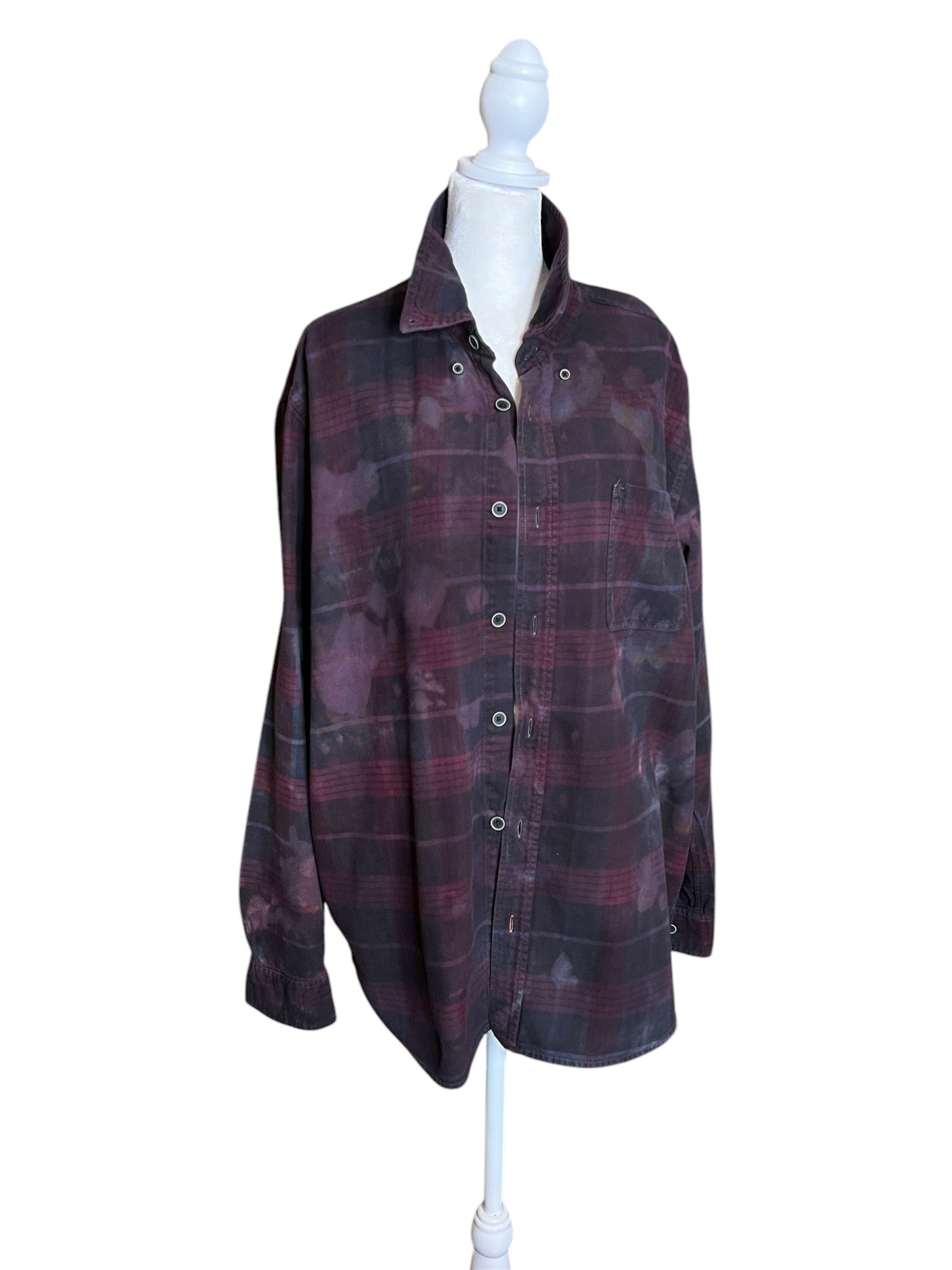 Hand dyed and distressed flannels. Perfect addition to any outfit. You can wear these with your favorite jeans, shorts, leggings, or denim skirt.. a good looking and comfy addition to most any outfit.