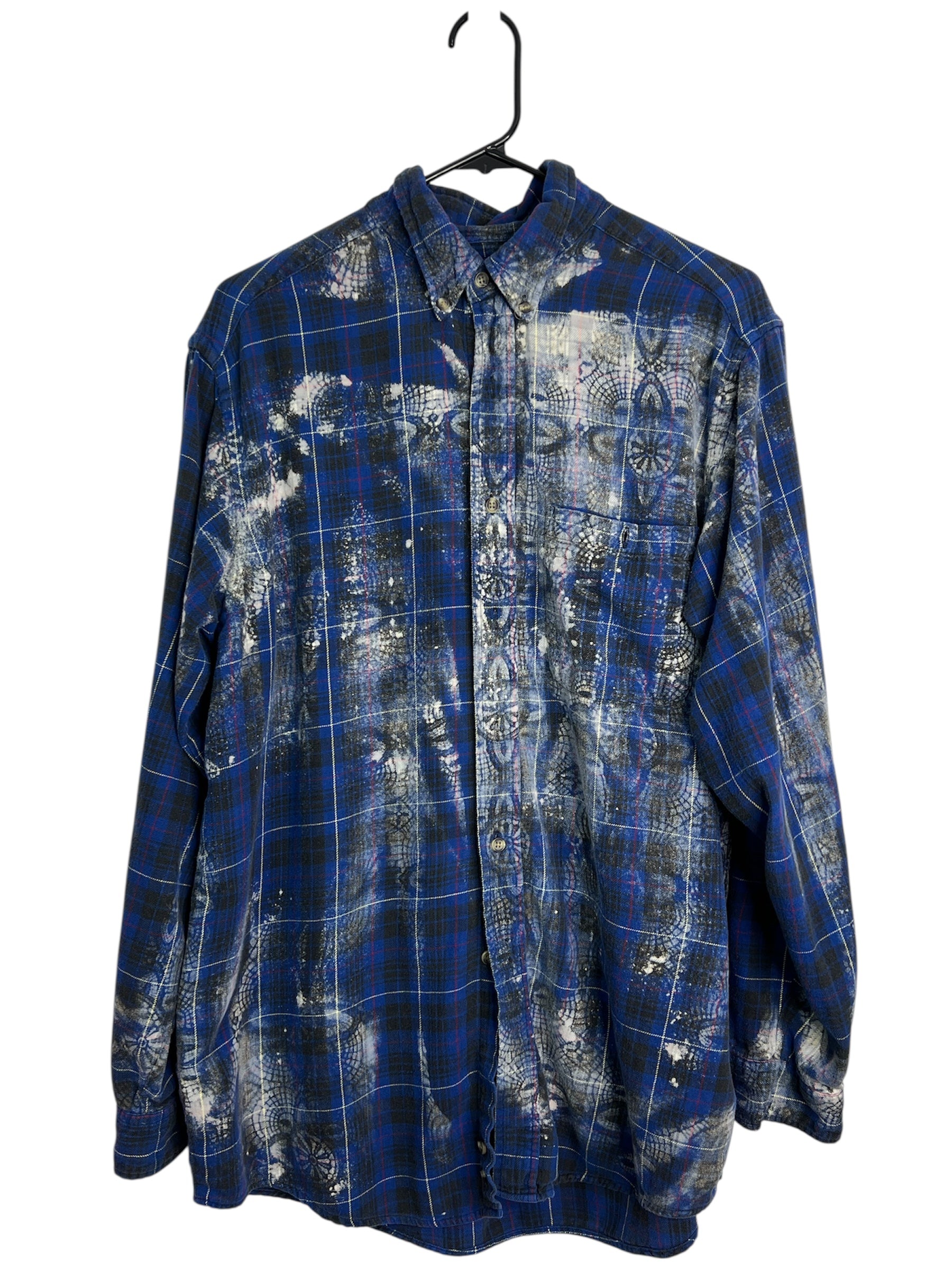 This SovereignStitch Flannel collection redefines sustainable streetwear. Each piece is upcycled from vintage flannels, hand-dyed with artistic precision, and finished with intentional distressing for a lived-in, elevated feel.