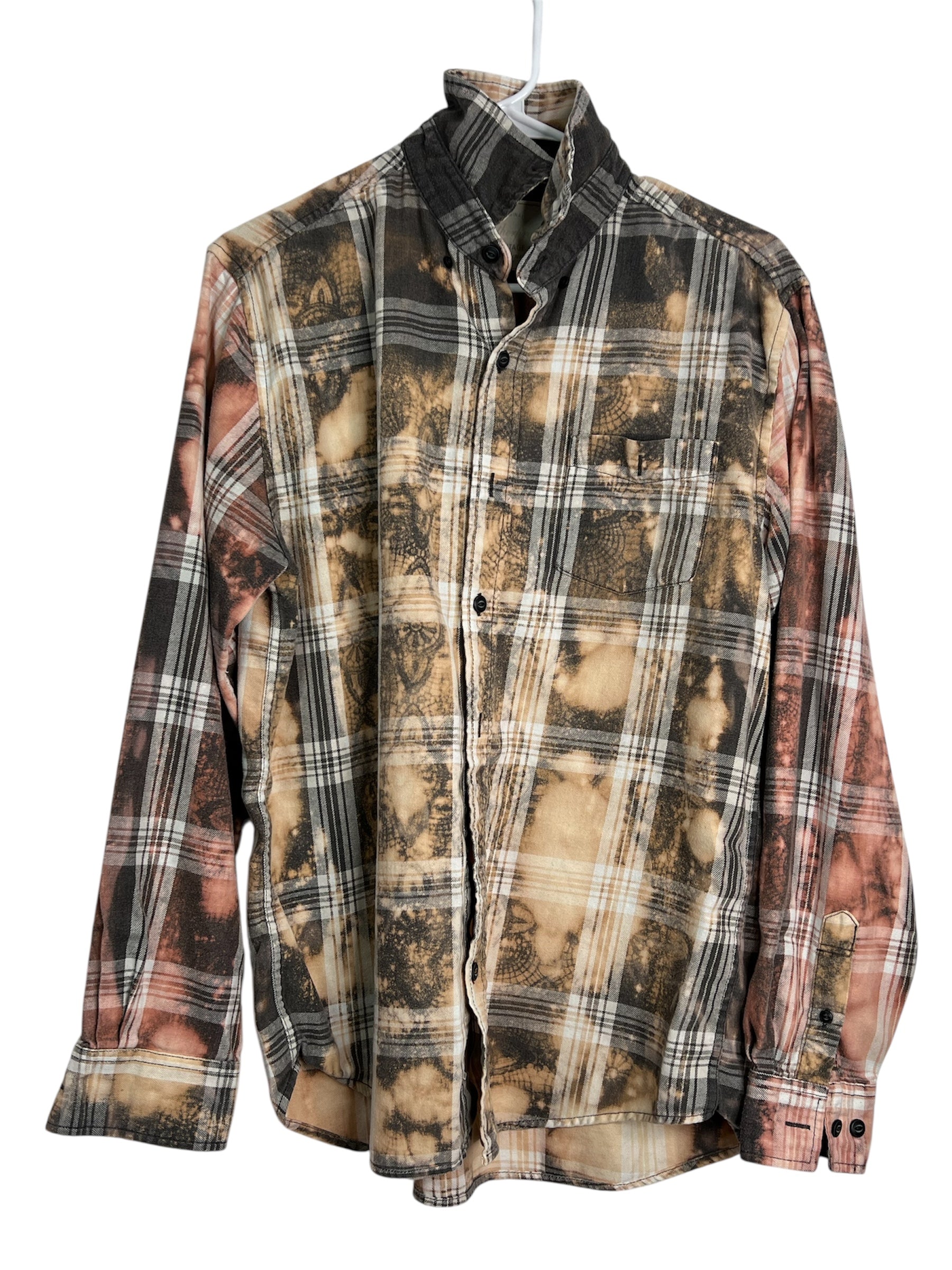 This SovereignStitch Flannel collection redefines sustainable streetwear. Each piece is upcycled from vintage flannels, hand-dyed with artistic precision, and finished with intentional distressing for a lived-in, elevated feel.