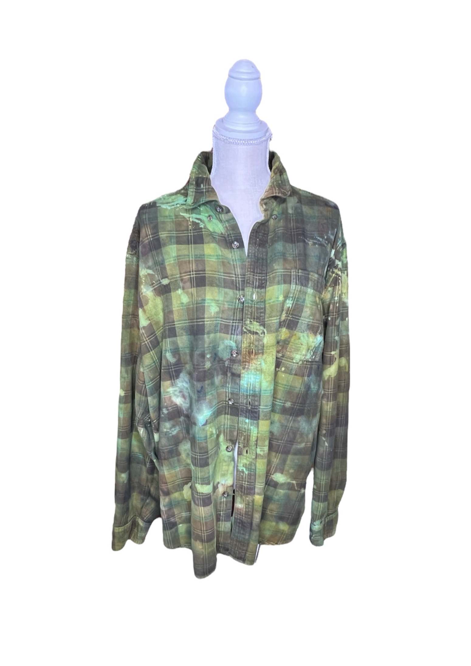 Hand dyed and distressed flannels. Perfect addition to any outfit. You can wear these with your favorite jeans, shorts, leggings, or denim skirt.. a good looking and comfy addition to most any outfit.