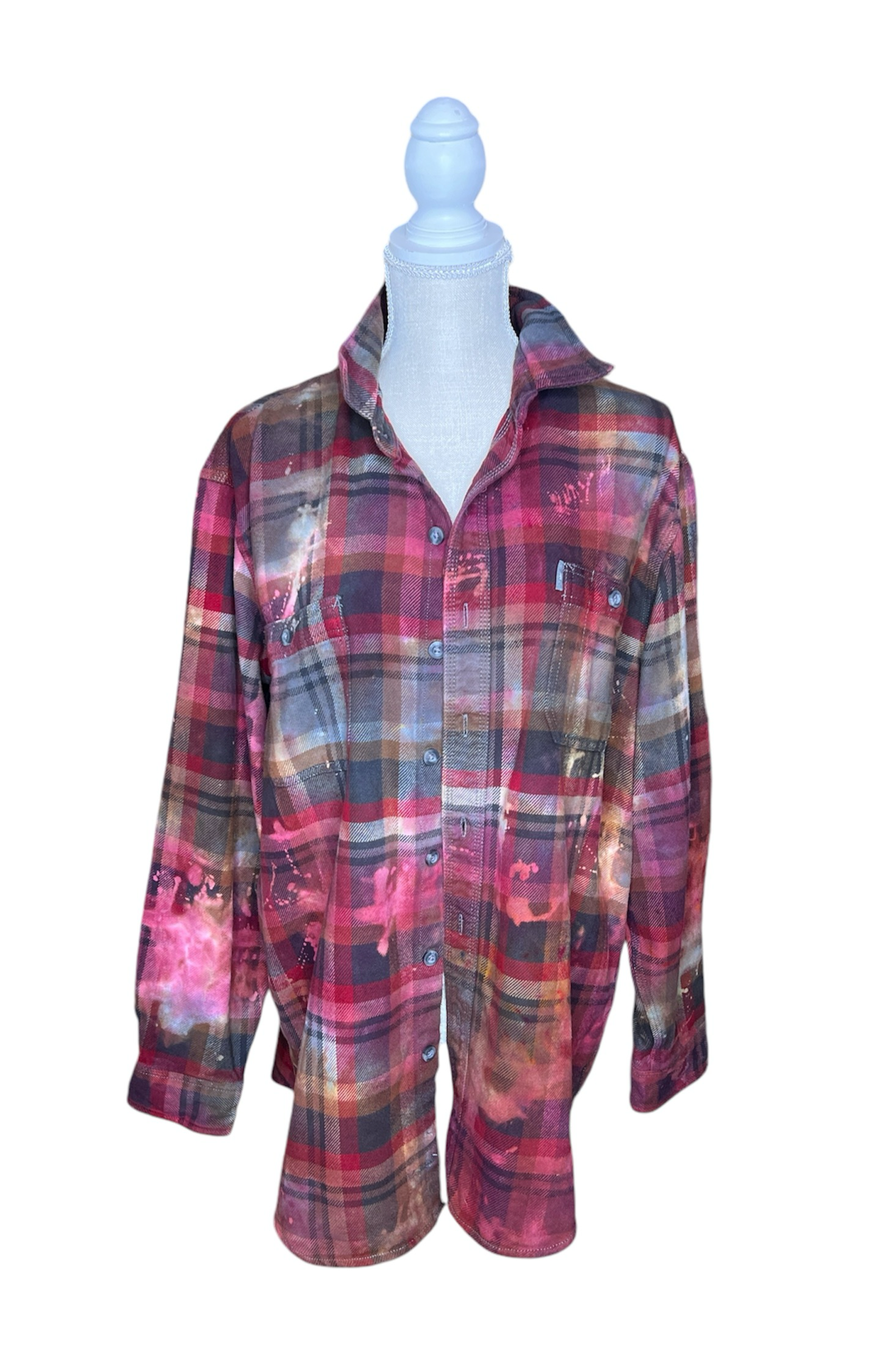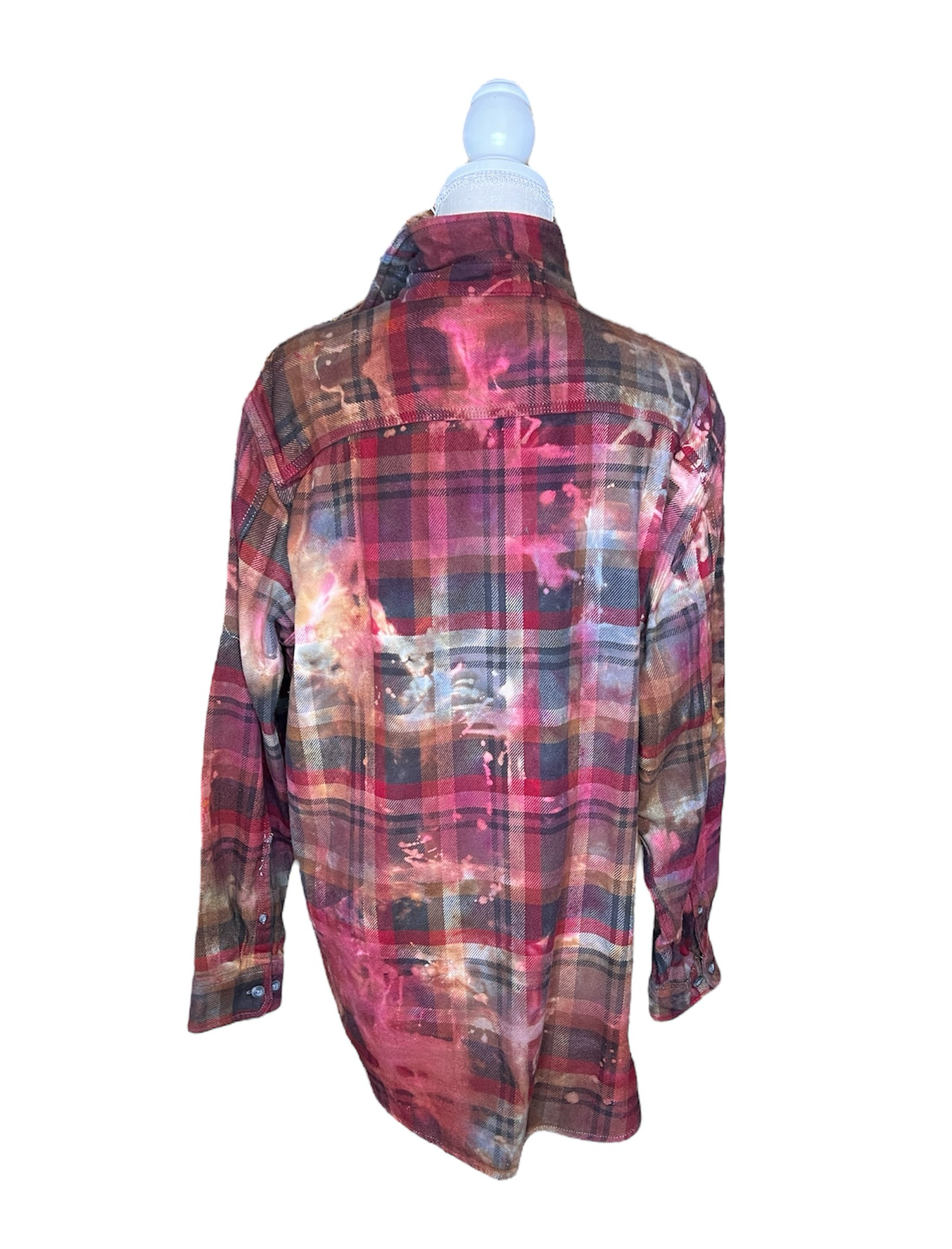 Item is unisex sizing. Each flannel is up cycled and hand dyed, making for a one of a kind piece.
