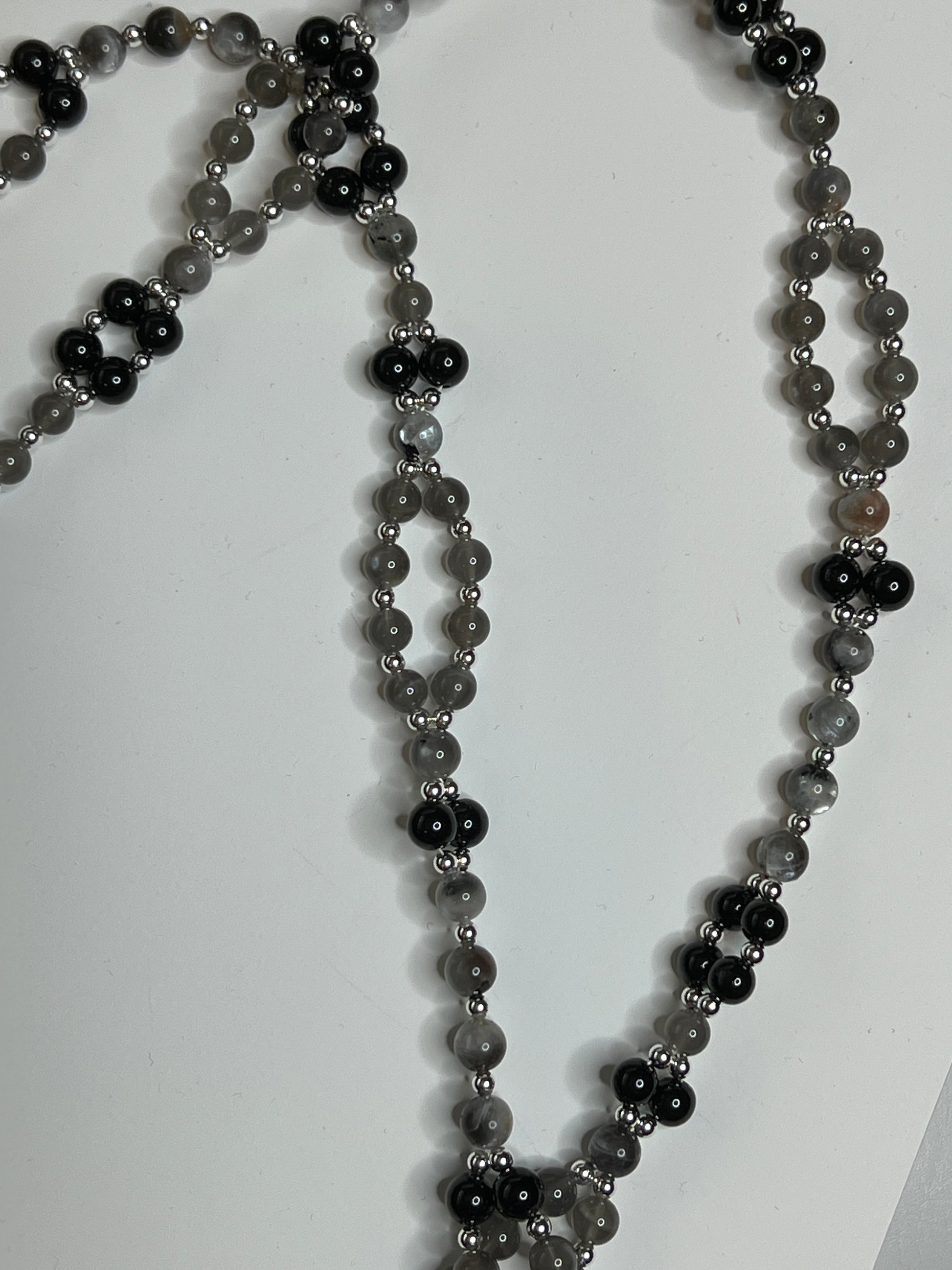 gemstone: Gray Moonstone, Black Tourmaline, and Sunstone Moonstone with sterling silver accents.