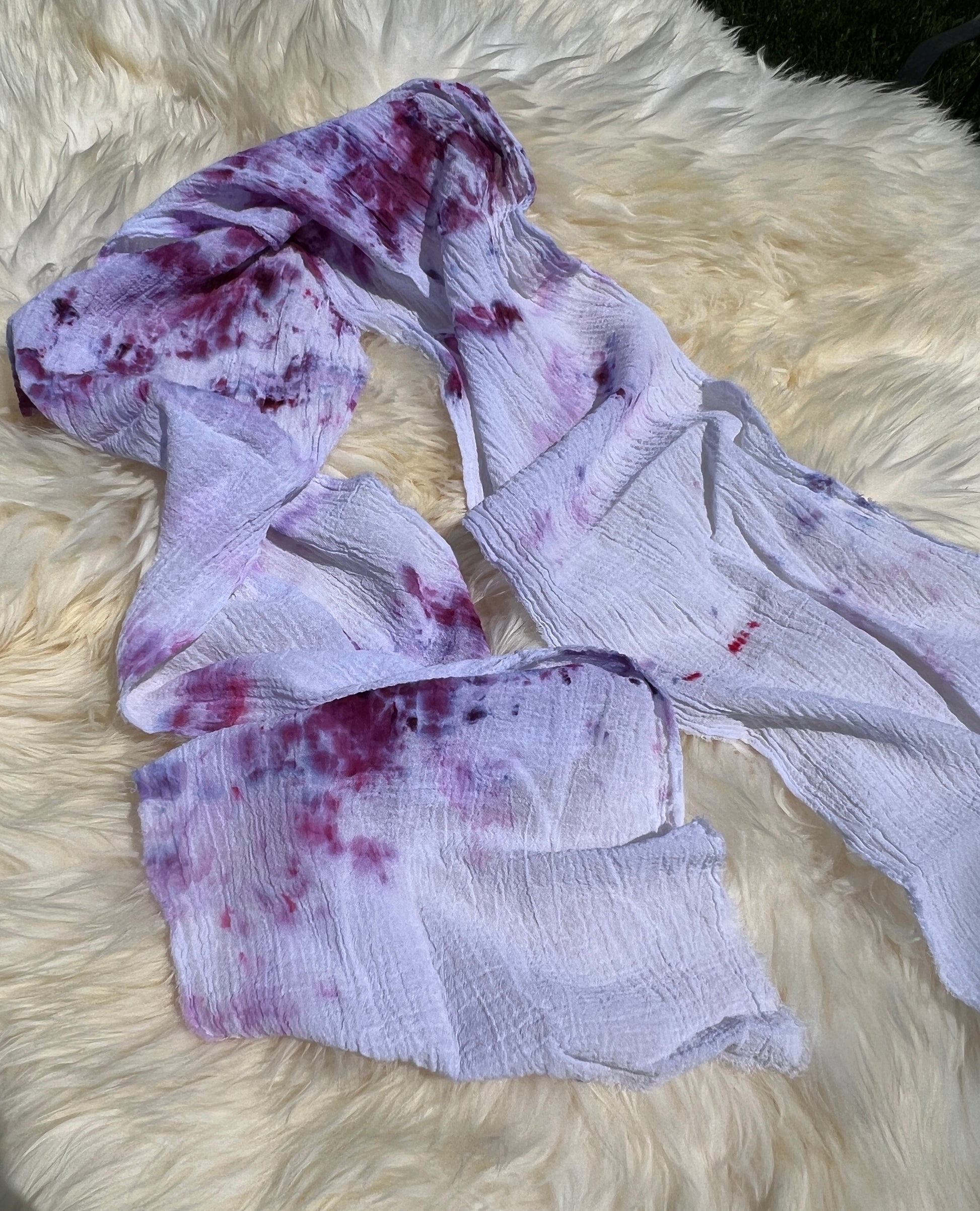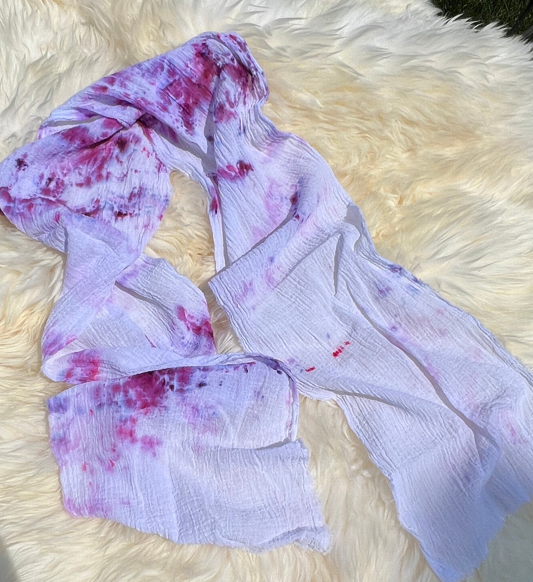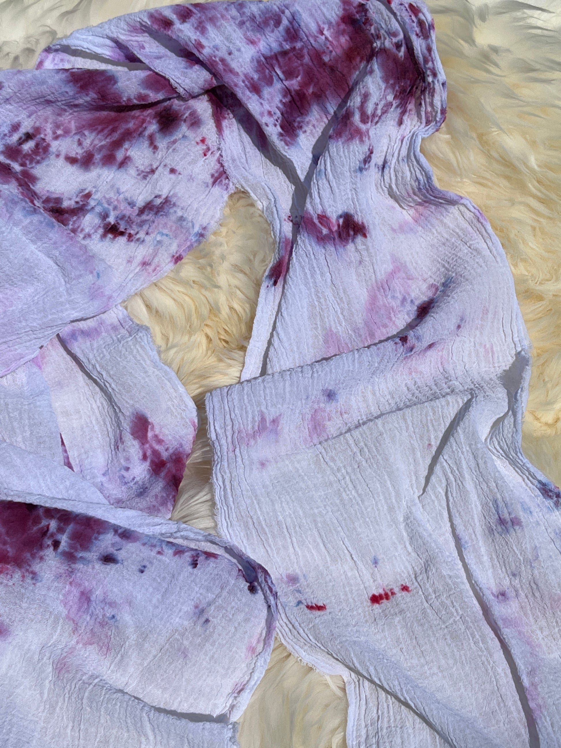 Material: 100% Cotton. Light and airy with crinkle texture. Hand dyed with low impact, non toxic dye.