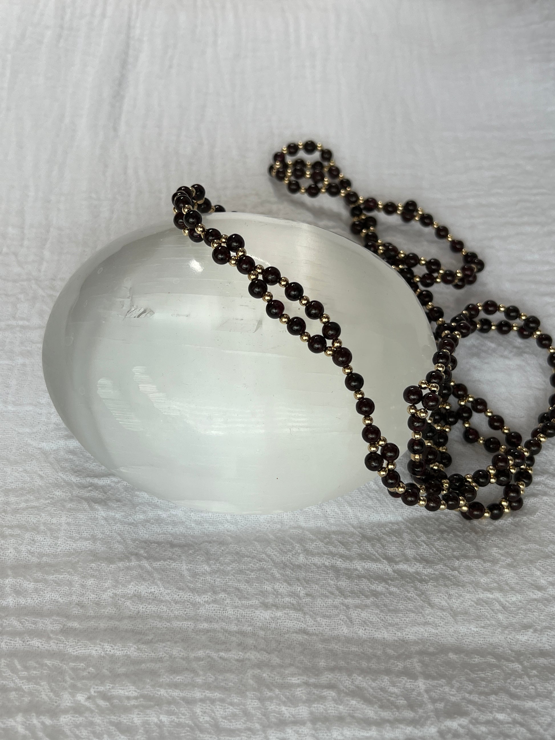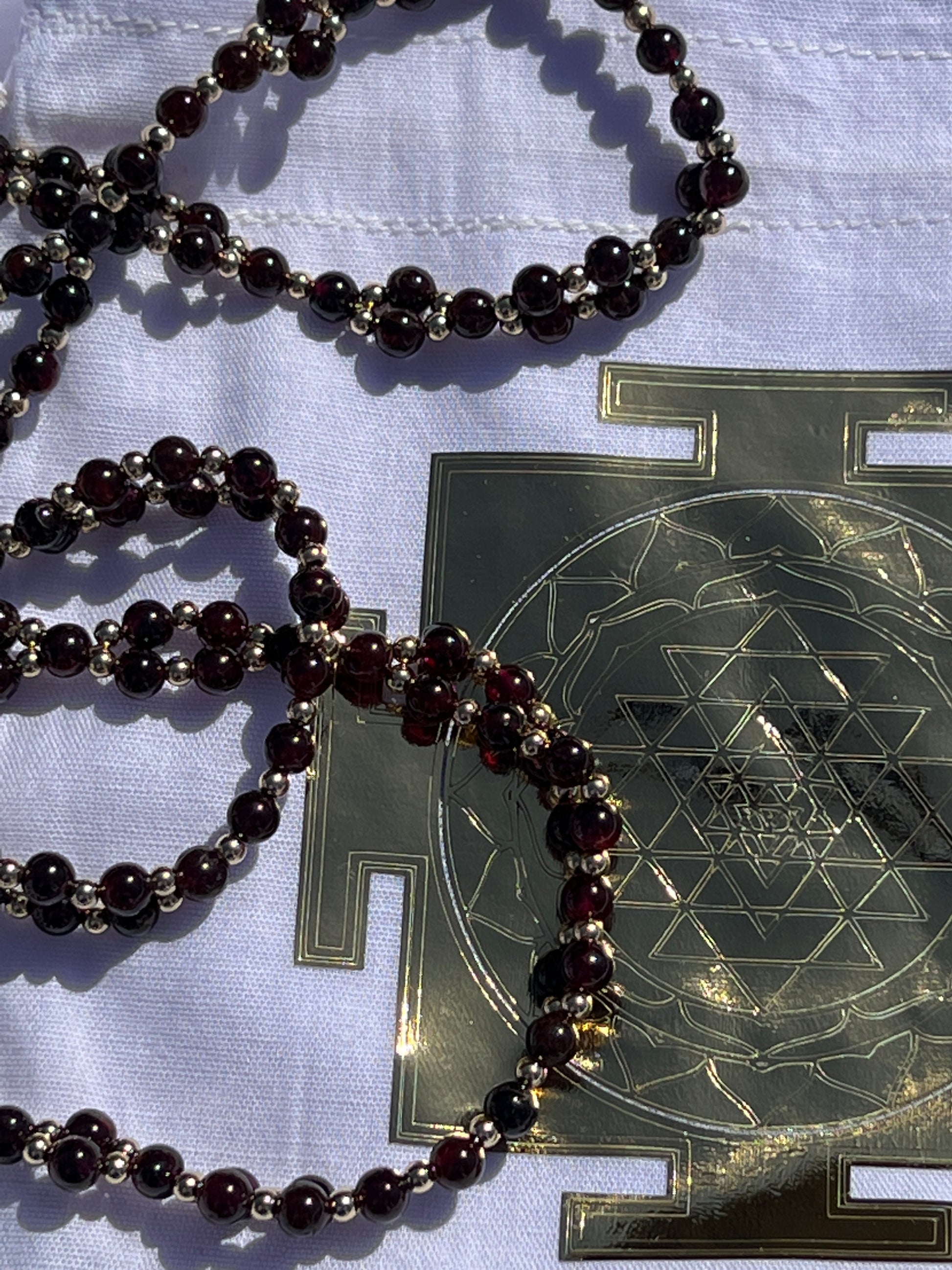 Gemstone: Garnet can settle feelings of uneasiness, bring order to your life, and revitalize your body, mind, and spirit. One of the oldest crystals used for spiritual protection. Garnet has the element of fire. Which can be used to increase movements and vibrations in the body. That can be needed to break apart stagnant energies and transform yourself into the person you desire to become. Garnet can increase your self confidence, creativity, passion for life. It stimulates the brain to think in new and different ways. Garnet is also a great stone for enhancing meditation and your kundalini yoga practice.