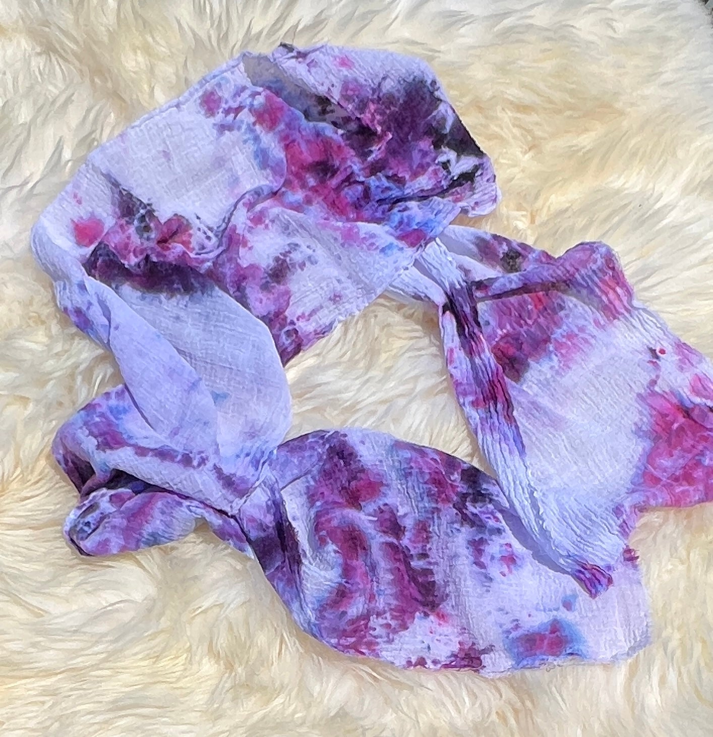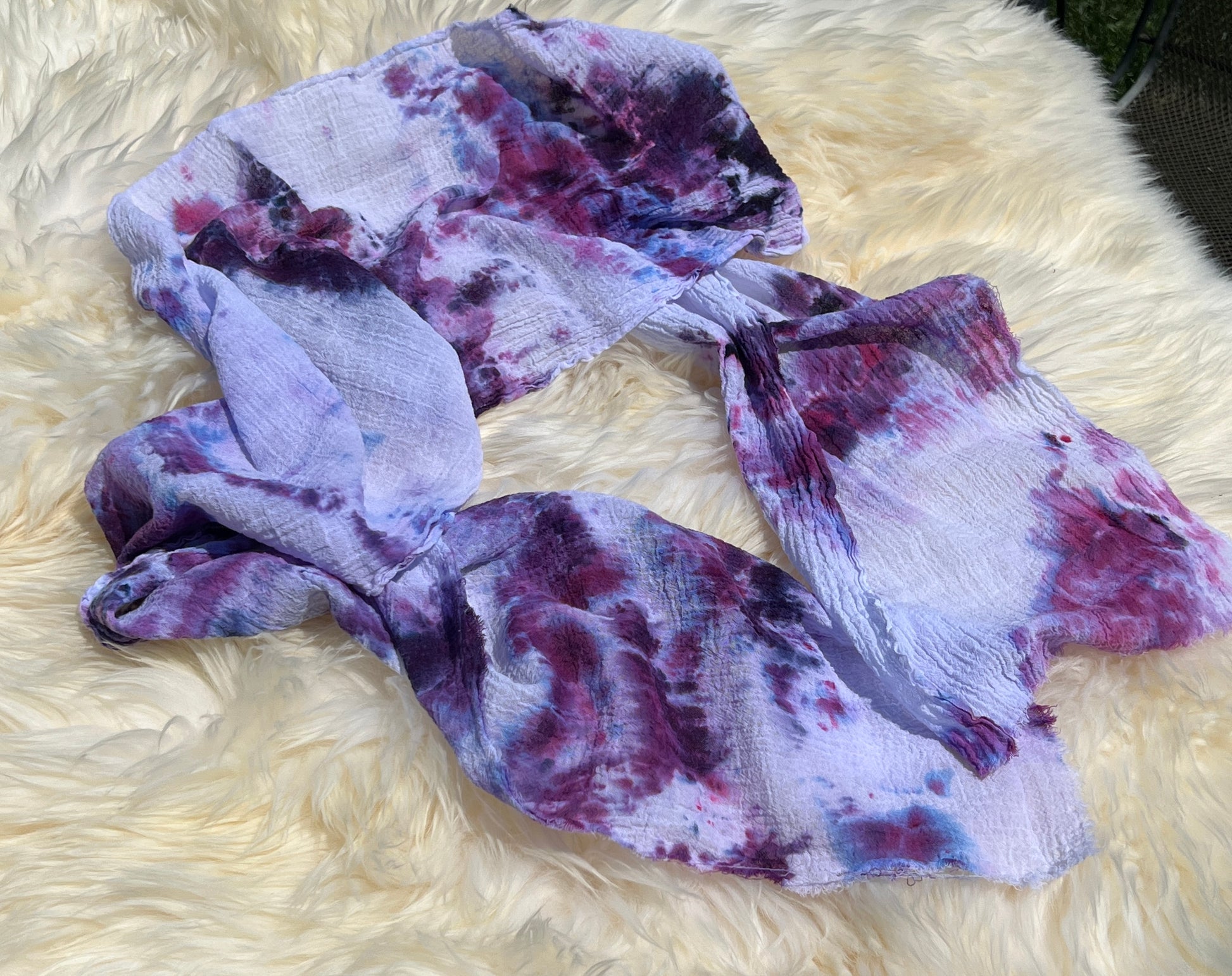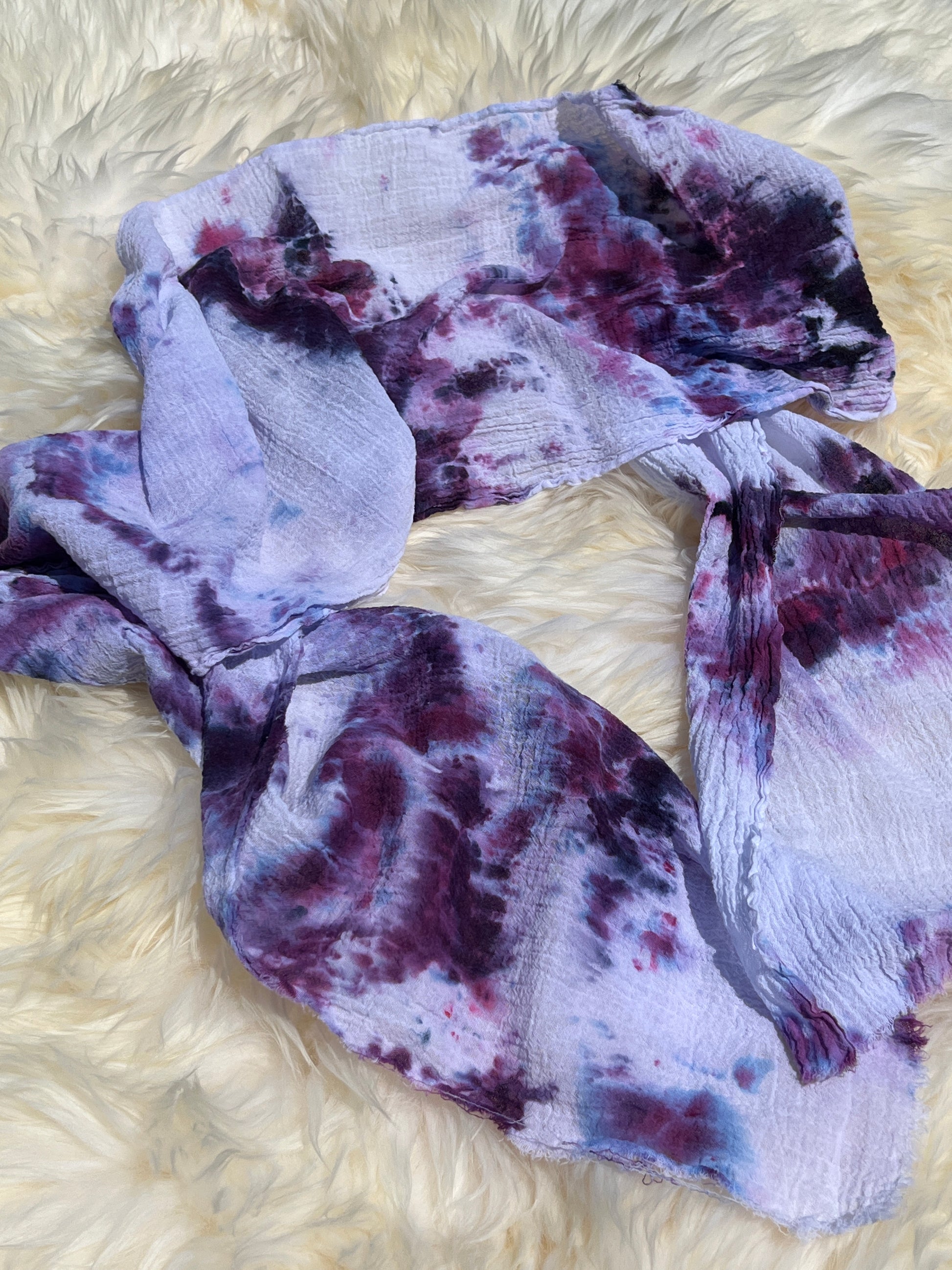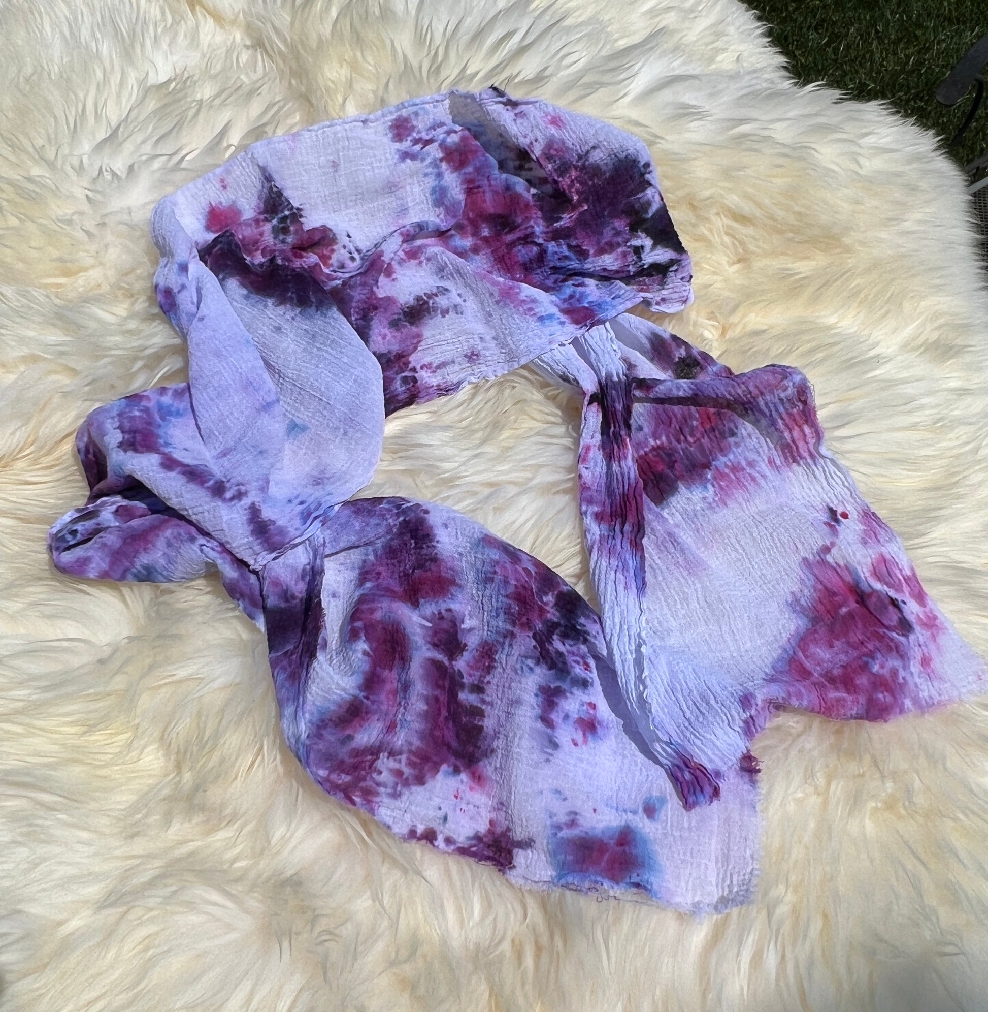 Material: 100% Cotton. Light and airy with crinkle texture. Hand dyed with low impact, non toxic dye.