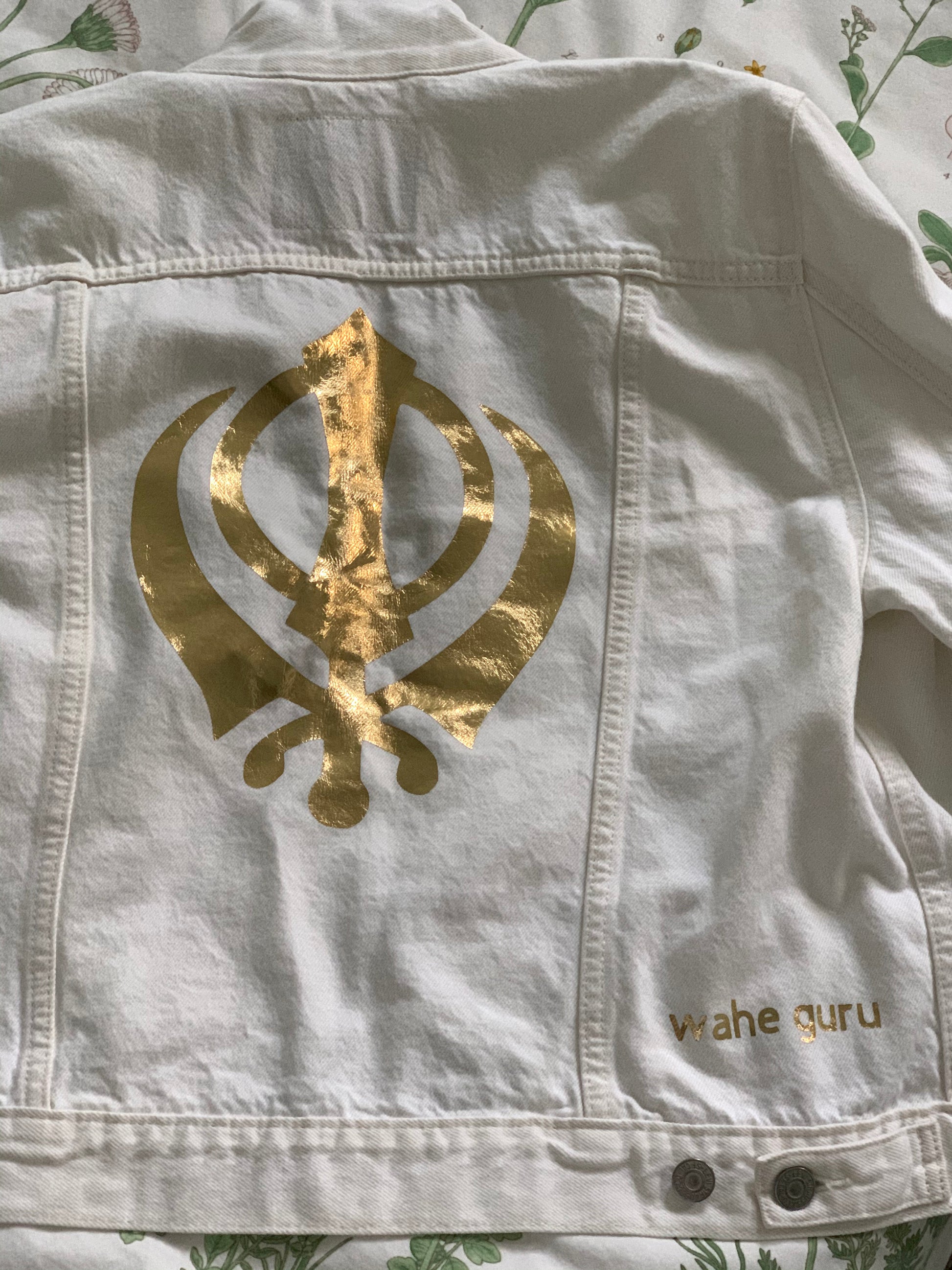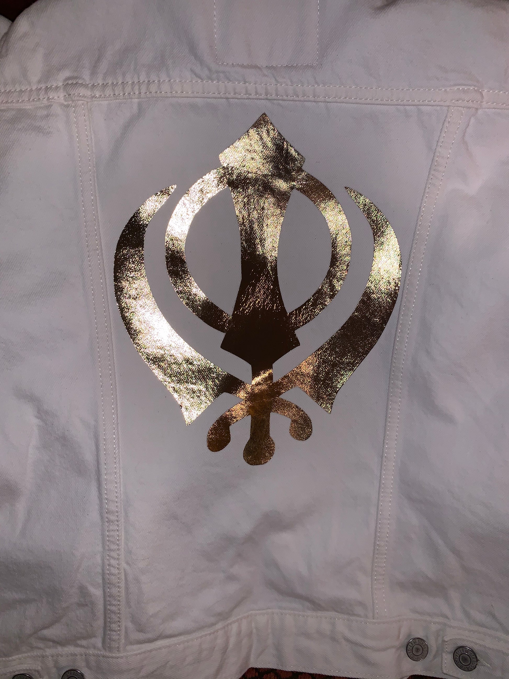 Altared jackets are one of a kind creations. Ready for immediate wear. 22kt gold Wahe Guru and Adi Shakti/Khanda decals adorn each jacket.